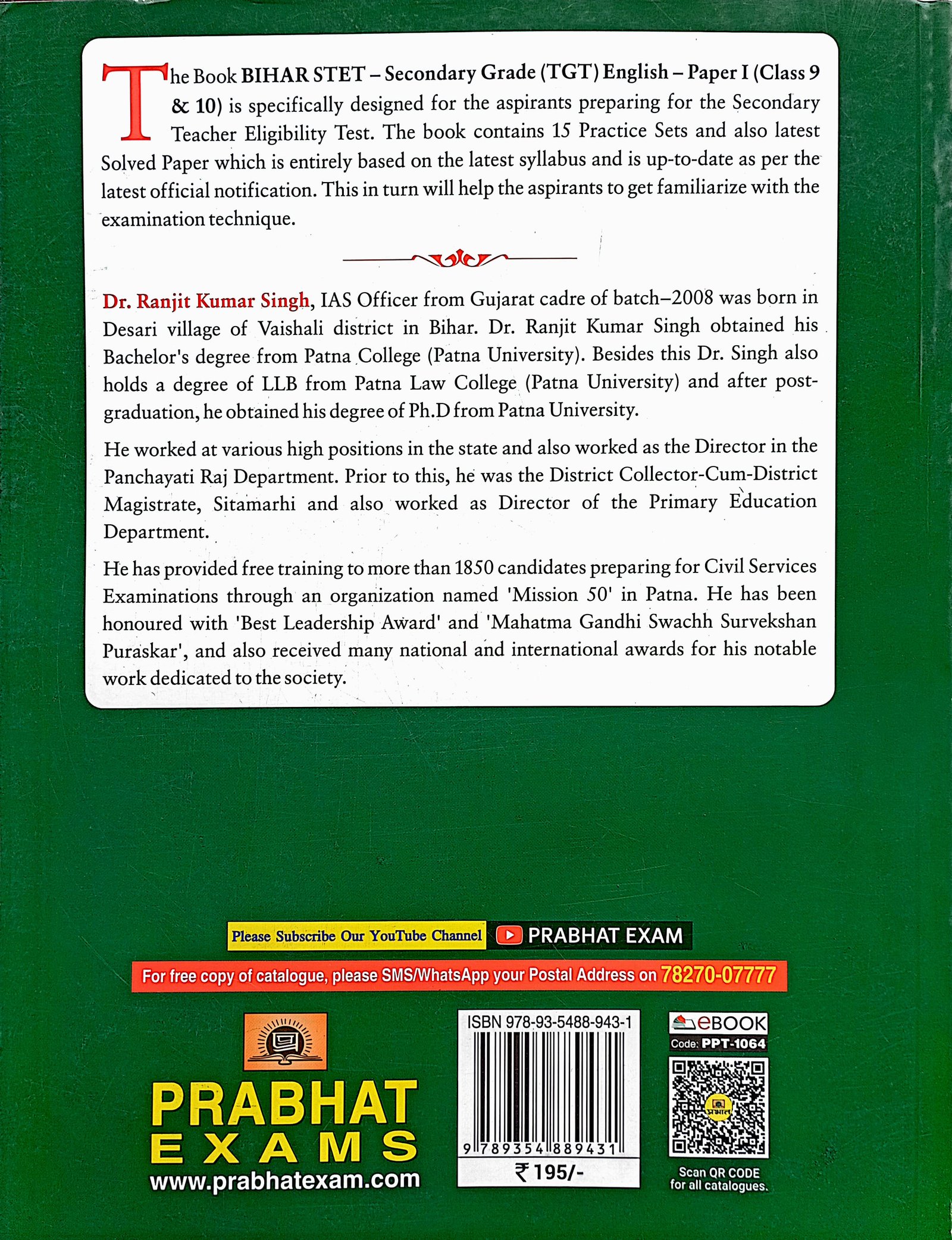Prabhat Bihar STET Paper 1 Class 9 to 10 practice sets English PPT1064